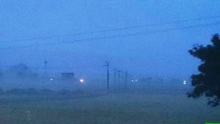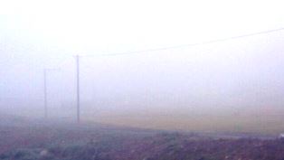 福岡市内を抜けて走って行くと、霧が真っ白。