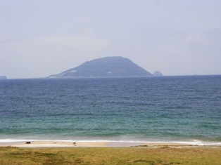 遠くに鳥居が見えて歩いて行きましたが、引潮の時しか渡れないような