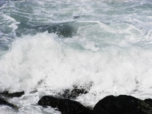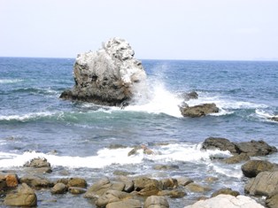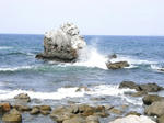 玄界灘の波は荒く、真っ白な波しぶきをあげて岩に打ち寄せます。