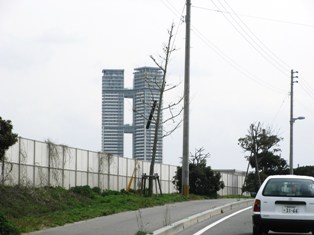 その一方で埋立地には、ポツリと建った高層マンションが、
