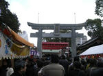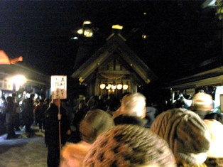 真っ暗な中から、神社の5時半開始より前に並んでいます。