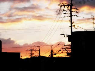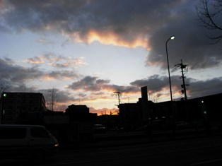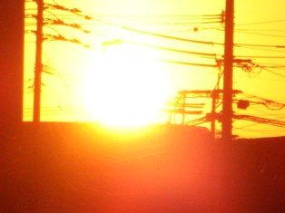 帰りは、駅から歩いていると、丁度陽が昇り始めていて・・
