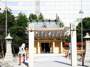 天神のど真ん中にある、工事中だった警固神社も木の香りのする新しい