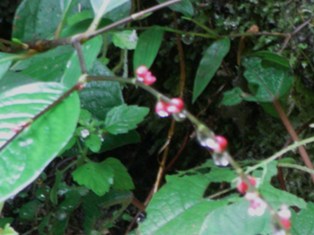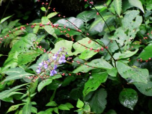 前日の雨で草むらは雫が、ま~るいたまをくっつけていました。