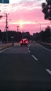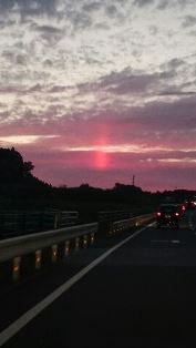 夕暮れて、沈む太陽が面白い光の様を見せてくれました。
