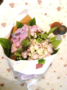 誕生日の日、先日あじさいのブーケをプレゼントして下さったお客様が