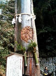 御神木です。雷が落ちた処に雷神が彫られていました。