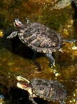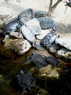 大きな亀がたくさん、気持ちよさそうに泳いでこっちを一斉に見ました。