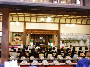 お参りを終えた芸妓さん達はお祝いの席に就いていました。