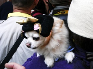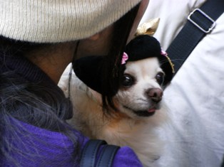 そしてその時それに負けないくらいめかし込んだワンちゃんを発見。