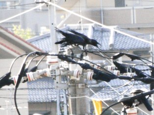 と思うぐらいに近くの電線にカラスが集まって来ていて