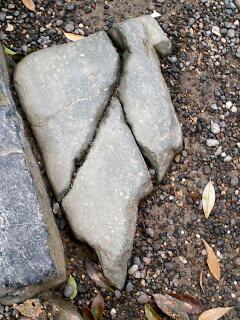 三枚目:天から降って来た石が人と言う字に割れた「踏まぬ石」です。