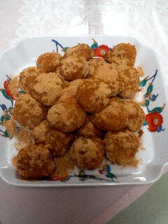 それから小豆を水につけたりして牡丹餅を作りました。