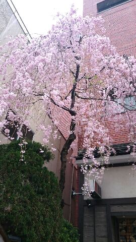 しだれ桜が雨の中、色鮮やかに美しく出迎えてくれて感謝。