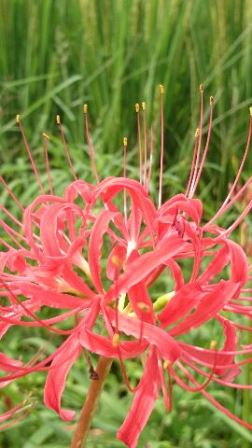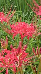 車で田園地帯を走り抜けていると、あぜ道や草むらに咲く「彼岸花」